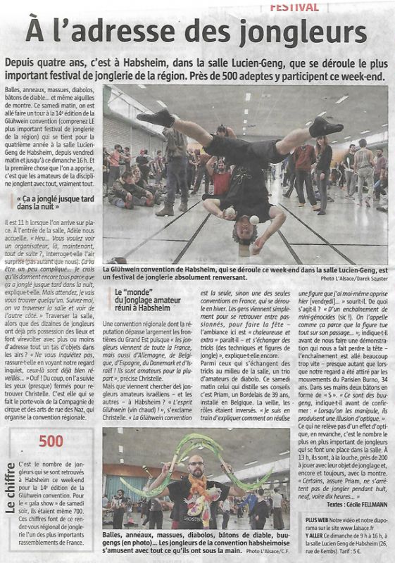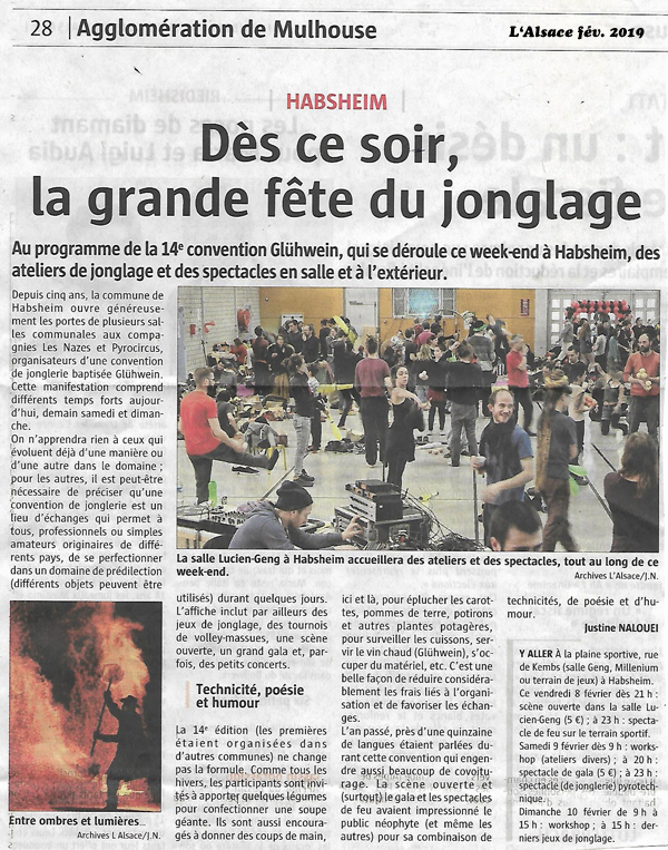 La Glühwein convention a eu lieu les 08, 09 et 10 février 2019 à Habsheim (68) et a regroupé environ 760 jongleurs.